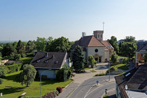 - Pfarrkirche Deutsch-Wagram: Das romanische Langhaus und das Chorquadrat wurde in der ersten Hälfte des 13. Jahrhunderts errichtet. Der gotische Chor und Teile des Langhauses stammen aus der zweiten Hälfte des 15. Jahrhunderts. 1671 wurde die Kirche barockisiert. Der Kirchhof ist ein ehemaliger Wehrkirchhof, der später als Friedhof genutzt wurde. Gegen Westen wurde der Wehrkirchhof mit Bastionen verstärkt. Einige weisen Schießscharten auf. Unterhalb der Kirche liegen zwei Erdställe. Vor der Wehrmauer ist der Hauptgedenkstein der Schlacht von 1809.