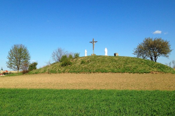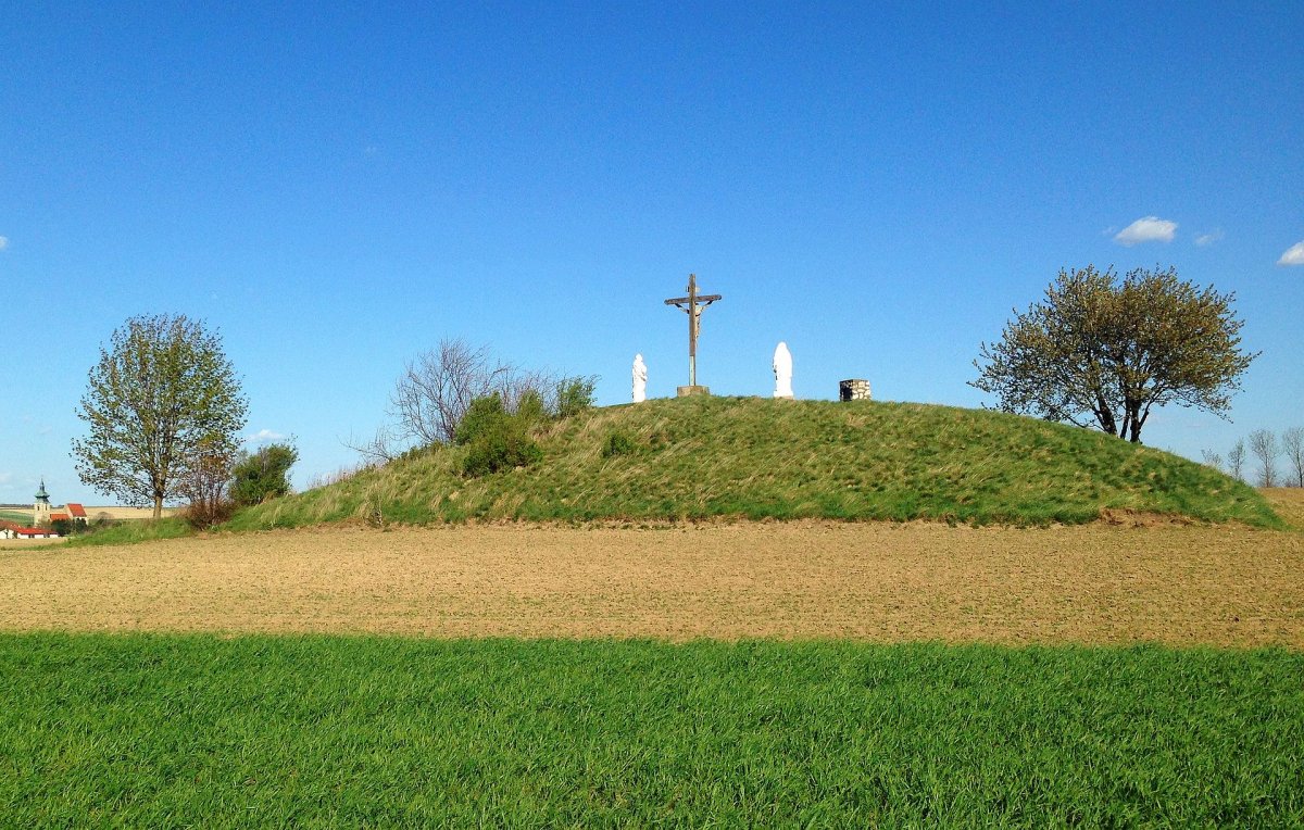 - Der rund fünf Meter hohe Tumulus liegt etwa 1,5 km südwestlich des Ortskerns und ist ein Grabhügel, in dem ein Fürst aus der Hallstattzeit (ca. 650 v. Chr.) bestattet wurde. Der weithin sichtbare hallstattzeitliche Grabhügel wird von den Einheimischen „Kalvarienberg“ genannt. Vermutlich im 18. Jh. wurden die barocken Statuen der Maria und des Johannes dort aufgestellt, dazwischen steht ein einfaches Holzkreuz.