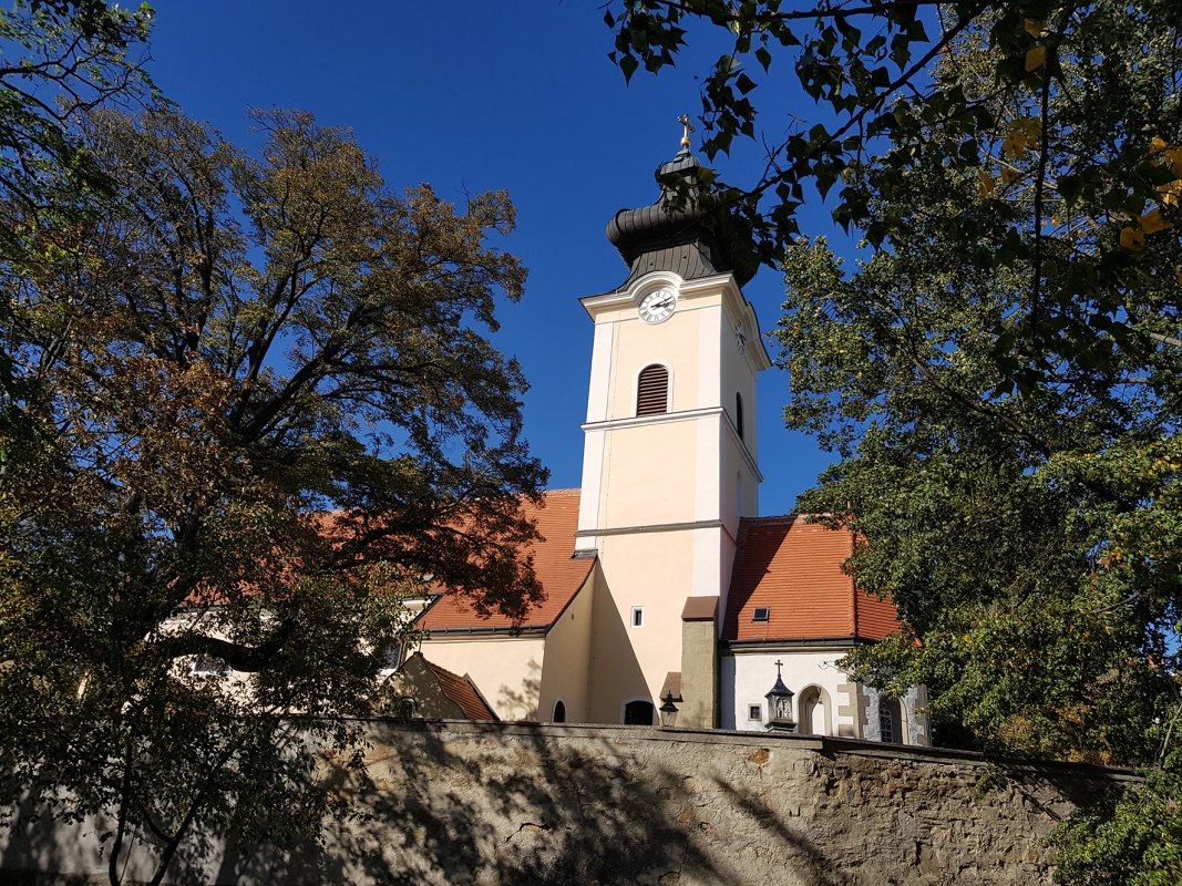 Die im 12. Jahrhundert errichtete romanische Kirche war eine Wehrkirche, in Verbindung mit einer Burg, etwas erhöht außerhalb des Dorfes, an einem Ausläufer des Bisamberges, ein Fluchtort der Bevölkerung in Zeiten einer kriegerischen Auseinandersetzung. Der ostseitige Kirchturm hatte die Funktion des Bergfrieds einer Burg. Im Jahre 1484 beim Einmarsch des ungarischen Königs Matthias Corvinus, die Zweite Wiener Türkenbelagerung 1683, wie der Ortsbrand 1850, zerstörten die Kirche. Beim Wiederaufbau wurden die geschwächten Außenmauern mit Pfeilern für die Tonnengewölbe unterstützt. Trotz weiterer baulicher Änderungen im 19. Jahrhundert ist der wehrhafte Charakter der spätromanischen Kirche erhalten. - Zahlreiche Hohlwege führen vom Ort Stammersdorf auf den Bisamberg. Einer dieser Hohlwege ist die Stammersdorfer Kellergasse. Die Kellergasse beginnt an der Kreuzung Clessgasse – Hagenbrunner Straße und führt steil ansteigend in Richtung Norden. In zahlreichen Kellern heißt es immer wieder „Ausg’steckt is“. Zwei Veranstaltungen führen jedes Jahr zahlreiche Gäste in die Stammersdorfer Kellergasse. Im Frühjahr lockt das „Mailüfterl“ und im Herbst die „Stürmischen Tage“ die Leute in die Kellergasse.