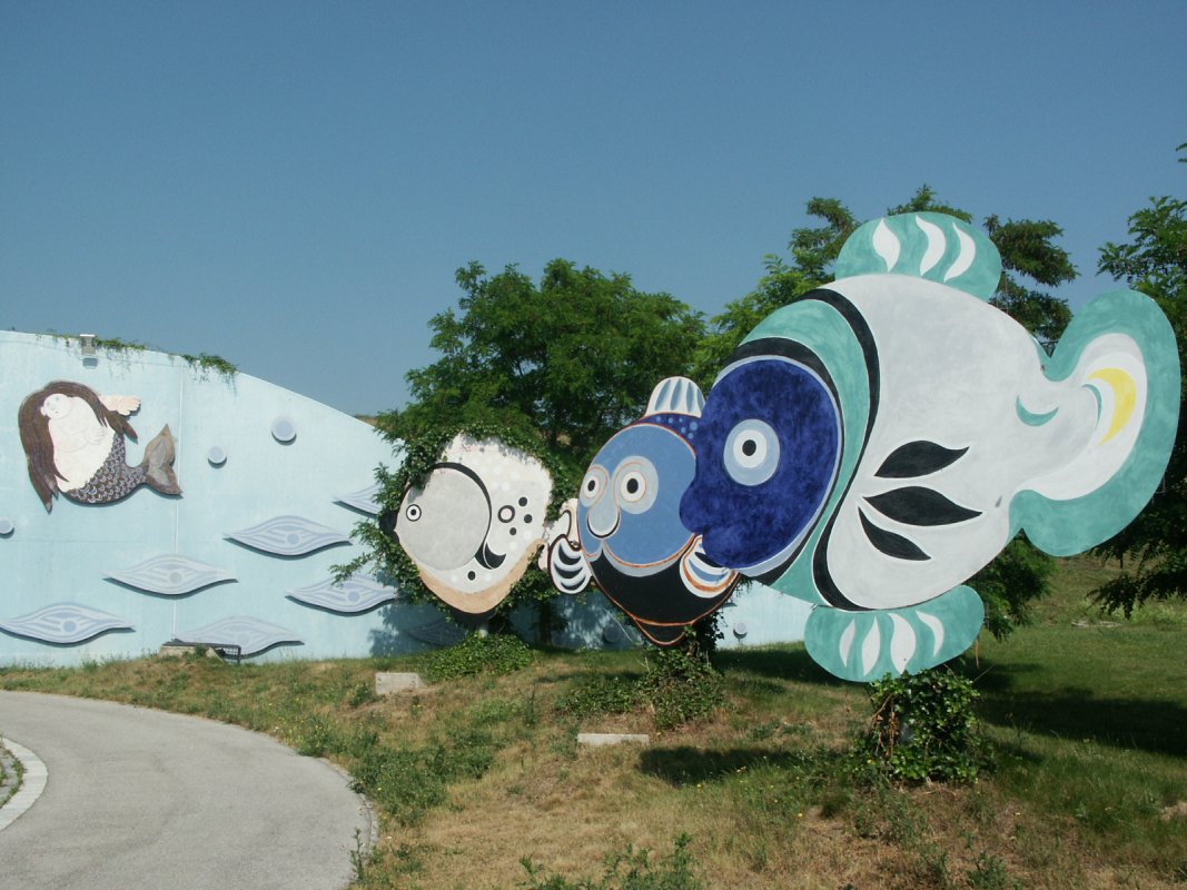 Der Wasserbehälter liegt in Stammersdorf am Osthang des Bisambergs und ist als erster und einziger Wasserbehälter der Wiener Wasserwerke nicht eingezäunt und daher frei zugänglich. Er fasst in zwei Kammern 60.000 Kubikmeter Trinkwasser, womit rund 100.000 Haushalte von Floridsdorf und Donaustadt im Notfall etwa zwei Tage lang versorgt werden können. Mit der künstlerischen Ausgestaltung des Behälters wurde der Künstler Gottfried Kumpf beauftragt. Die von der Brünner Straße aus sichtbare wellenförmig geschwungene Fassade des Behälters besteht aus blau eingefärbtem Beton und ist gemeinsam mit dem Vorplatz mit aus emailliertem Stahl gefertigten Figuren von Fischen, Nixen und einem Wassermann geschmückt. - Pfarrkirche Stammersdorf